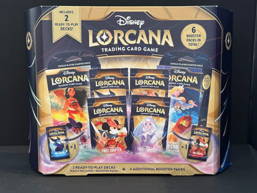 Lorcana The First Chapter Gift Set with 2 sealed starter decks and 4 extra booster packs. 6 Booster packs total.