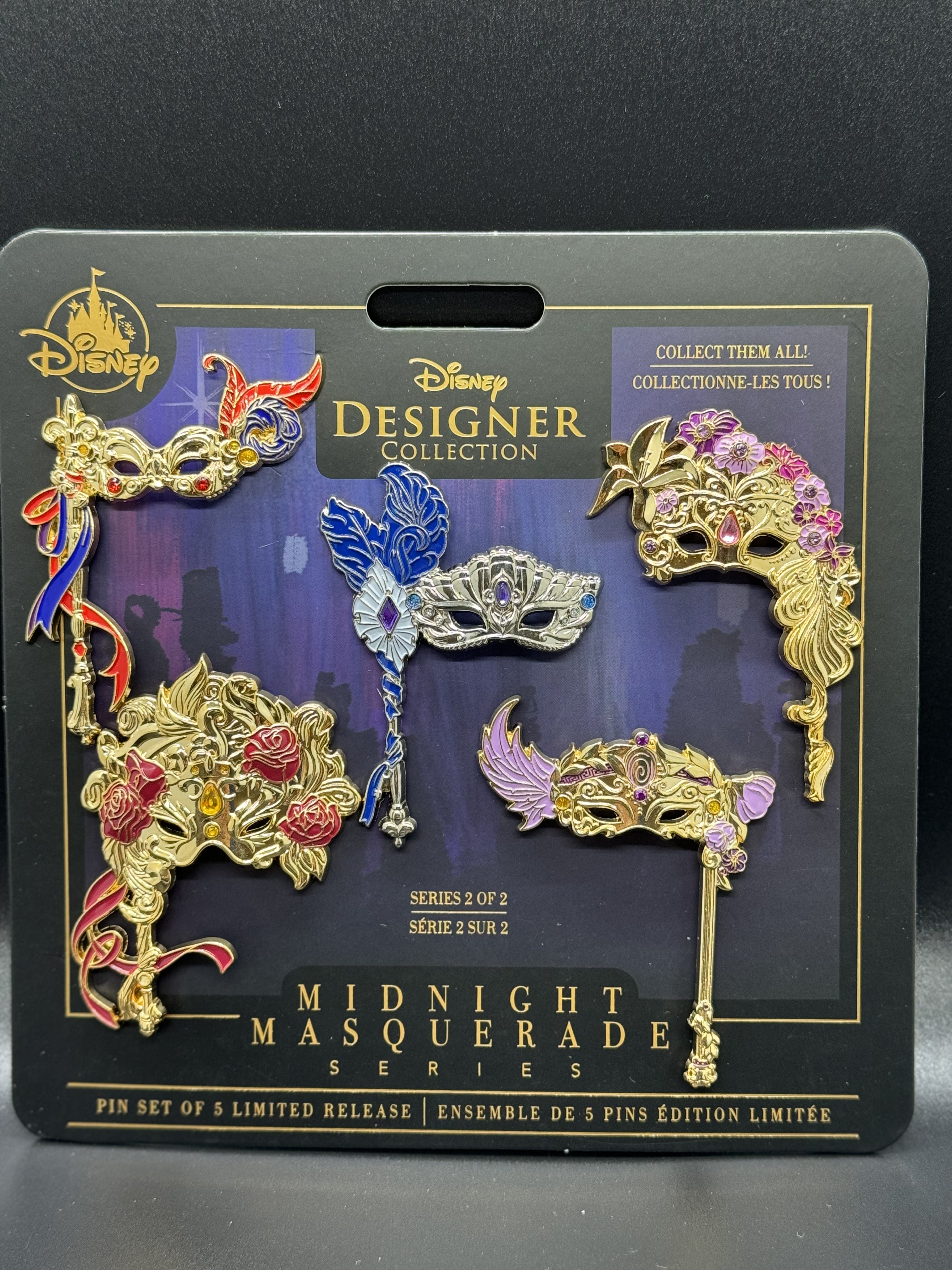 Disney Designer Collection Midnight Masquerade Series 2. Pin set of 5. Limited Release.